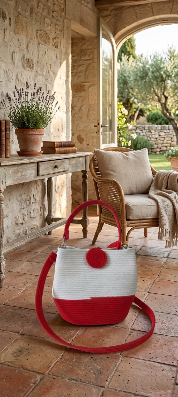 A BANTRICK This stylish cotton rope handbag is handcrafted from high-quality natural cotton, giving it a soft texture and a durable finish. Designed with a sturdy cotton strap, it is comfortable to carry and perfect for everyday use. The woven rope design adds a modern, eco-friendly touch, making it ideal for casual outings, shopping, or beach days. Lightweight yet spacious, this handbag combines practicality with timeless style.“COTTON ROPE” appears to refer to a crocheted/crochet‑style handmade bag/handbag made with cotton or similar materials. Many are marketed as eco‑friendly / boho / beach / market bags, often with granny square designs, floral motifs, off‑white or neutral colours. They often have one main compartment; some have a couple of inner compartments or pockets. Most Crosia bags are handcrafted with 100% cotton fabric / yarn. Sometimes there is a lining inside (cotton or mixed). Crochet/granny‑square motifs or floral granny squares joined together. Some have solid crochet pattern.