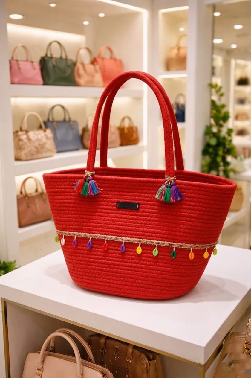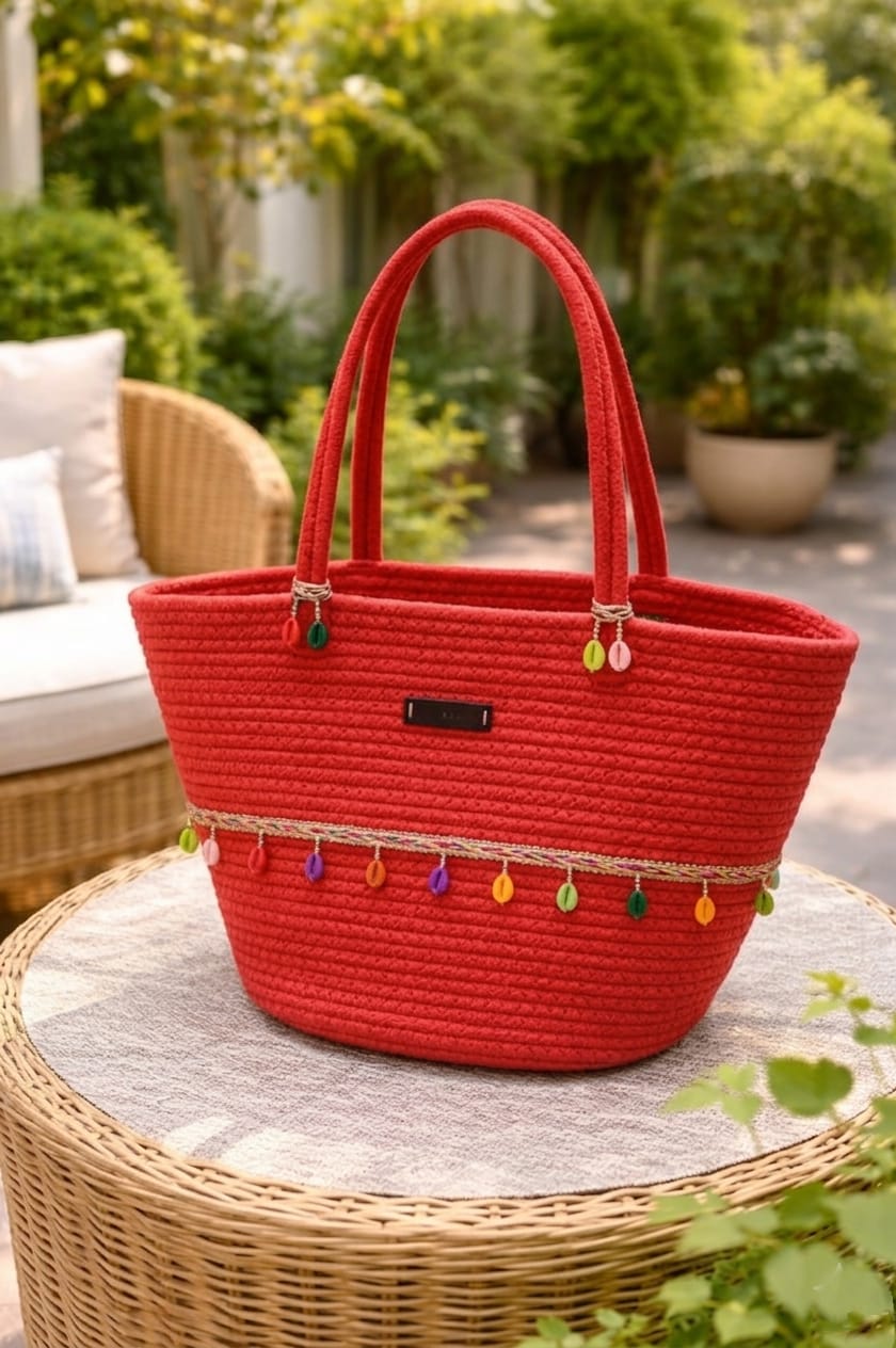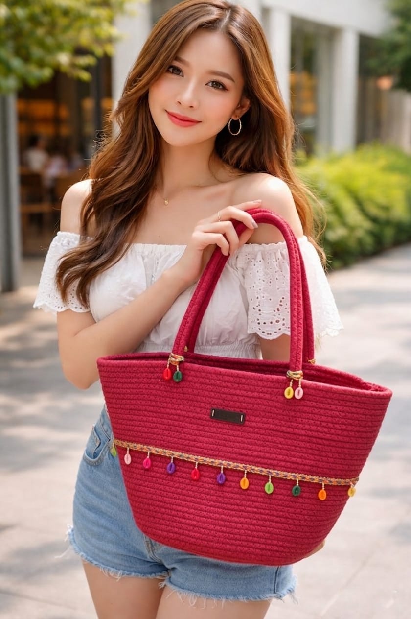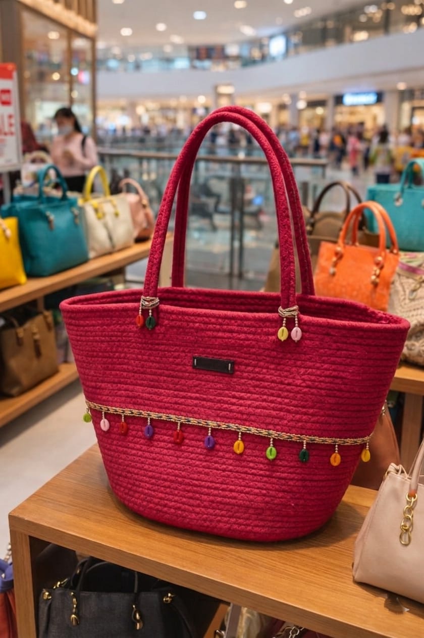 A BANTRICK This stylish cotton rope handbag is handcrafted from high-quality natural cotton, giving it a soft texture and a durable finish. Designed with a sturdy cotton strap, it is comfortable to carry and perfect for everyday use. The woven rope design adds a modern, eco-friendly touch, making it ideal for casual outings, shopping, or beach days. Lightweight yet spacious, this handbag combines practicality with timeless style.“COTTON ROPE” appears to refer to a crocheted/crochet‑style handmade bag/handbag made with cotton or similar materials. Many are marketed as eco‑friendly / boho / beach / market bags, often with granny square designs, floral motifs, off‑white or neutral colours. They often have one main compartment; some have a couple of inner compartments or pockets. Most Crosia bags are handcrafted with 100% cotton fabric / yarn. Sometimes there is a lining inside (cotton or mixed). Crochet/granny‑square motifs or floral granny squares joined together. Some have solid crochet pattern.