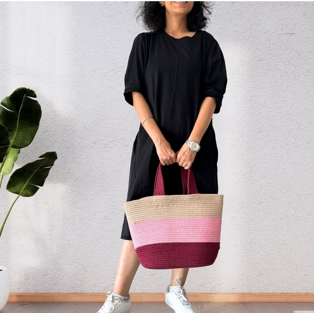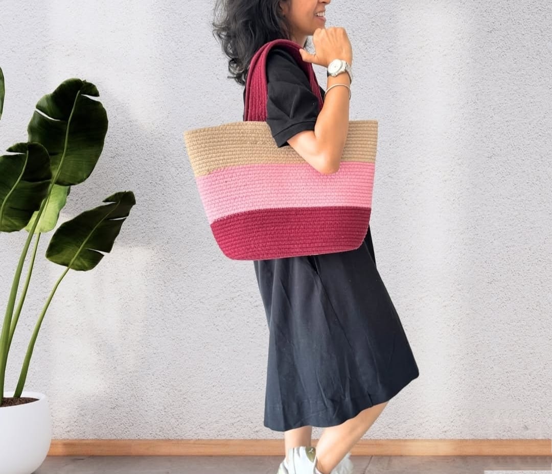 Cotton Rope/ Jute /Small Dry grass/Natural Cane/Chic Dry Grass Bag/Cotton Rope Woven Bag For Women Vibrant Cotton Rope Handbag Chic Large Tote For Women,Stylish Carryall & Shoulder Beige-Pink-Red Bag