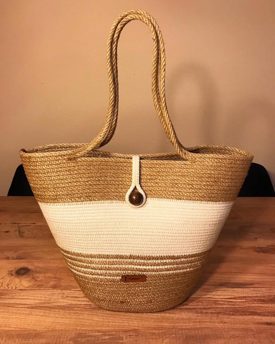 Part of our collection of Jute and Cotton Handbags, designed by talented craftsmen who combine fashion and sustainability. Made from eco-friendly cotton and jute, these handbags are perfect for any occasion, whether you’re heading to the office or a party.