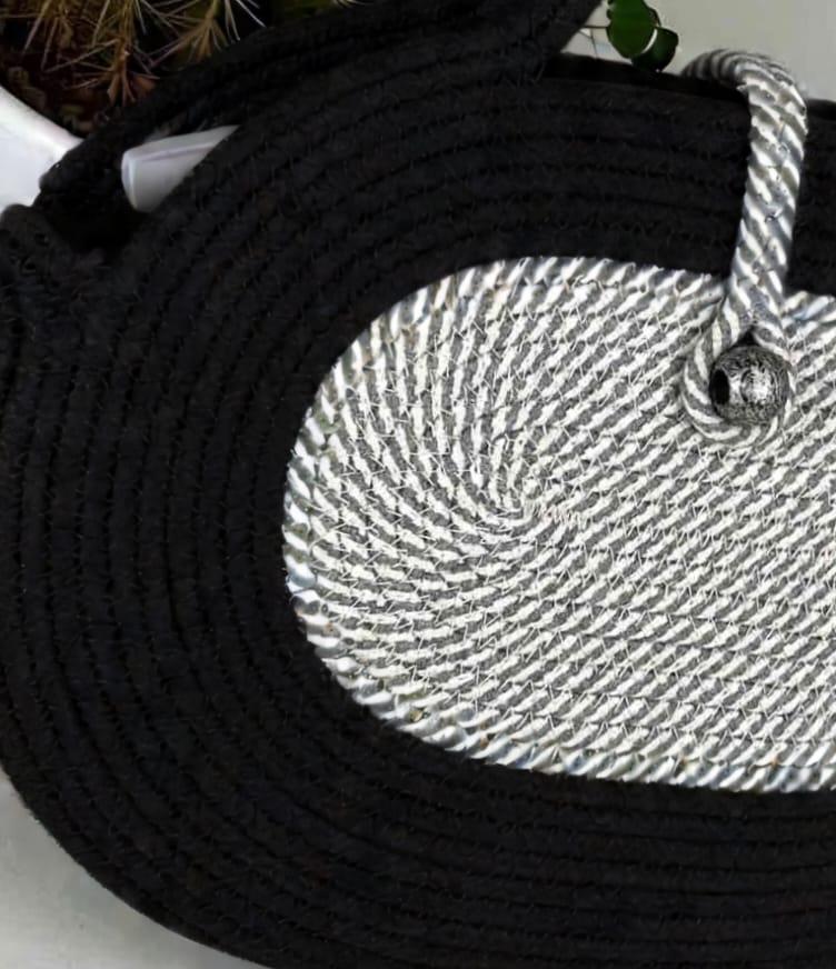 A Bantrick cotton rope handbag—a charming boho-style tote made from woven cotton rope, typically lightweight and ideal for casual outings. A beautifully handmade round sling bag with zipper pocket and eco‑friendly packaging Hand‑made with a cotton rope structure, internal pocket, and recycled packaging. Hand‑made with a cotton rope structure, internal pocket, and recycled packaging.