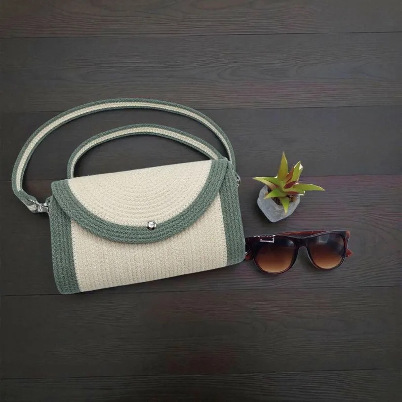 A Bantrick cotton rope handbag—a charming boho-style tote made from woven cotton rope, typically lightweight and ideal for casual outings. A beautifully handmade round sling bag with zipper pocket and eco‑friendly packaging Hand‑made with a cotton rope structure, internal pocket, and recycled packaging. Hand‑made with a cotton rope structure, internal pocket, and recycled packaging.