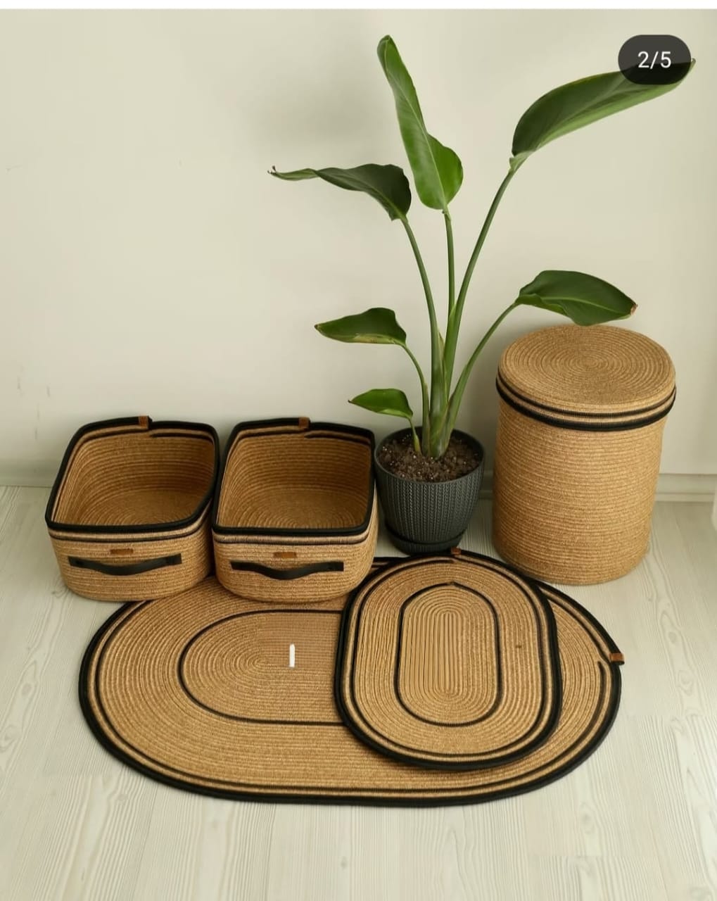 Bring warmth, organization, and natural elegance into your home with this handcrafted jute storage and décor set. Thoughtfully designed for modern homes, this set blends functional storage with aesthetic floor styling, making it perfect for living rooms, bedrooms, entryways, or balconies.