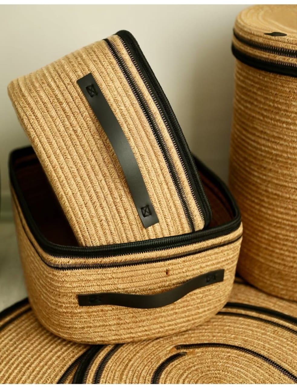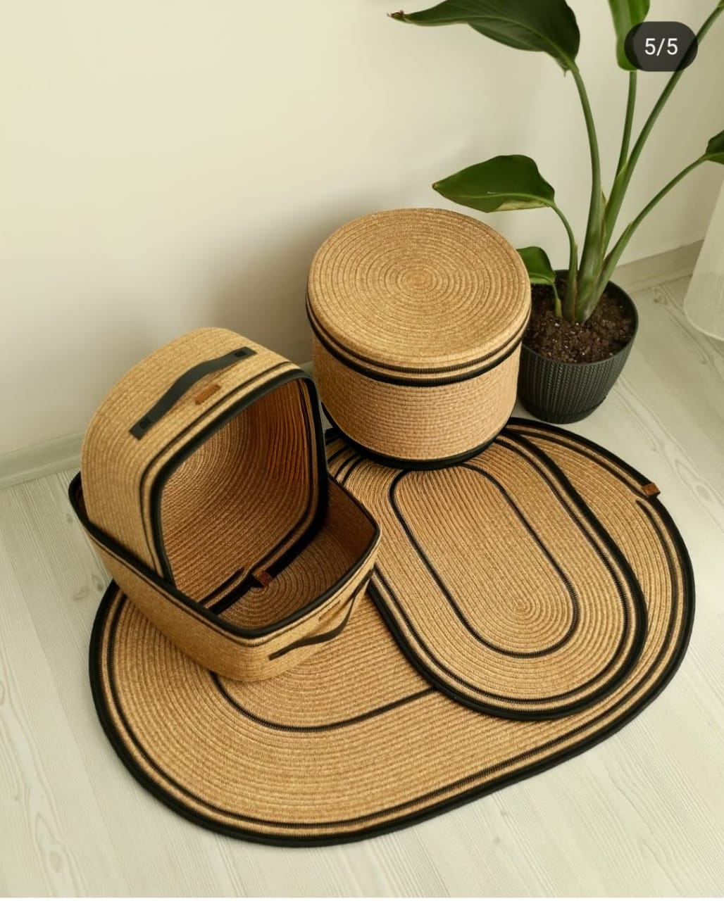 This versatile set includes woven storage baskets, a matching laundry or utility bin, and coordinated floor mats, ideal for organizing daily essentials while enhancing your décor. The breathable natural material keeps items fresh and makes the set suitable for everyday use.